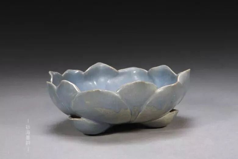 宜興窯仿鈞天藍(lán)釉蓮花式洗