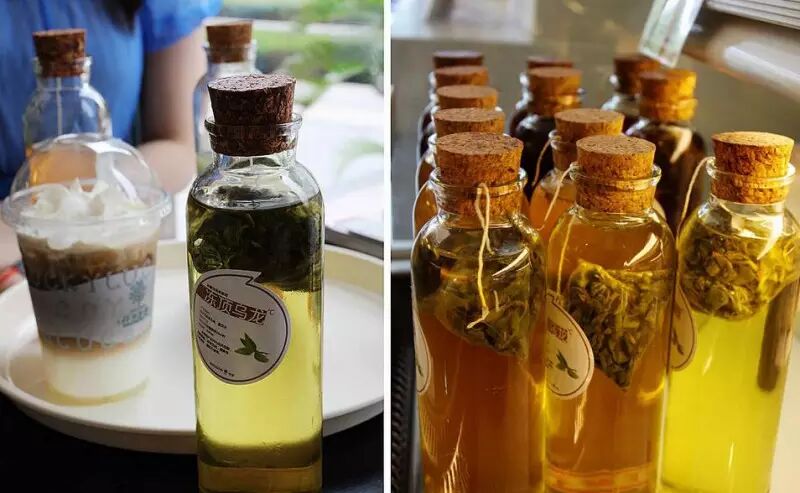 創(chuàng)意泡法:除了普洱茶外,其他如文山包種茶〈包括清香包種與奇種烏龍茶〉、高山烏龍茶、綠茶、紅茶、東方美人茶、花茶等均可以冷水沖泡。
