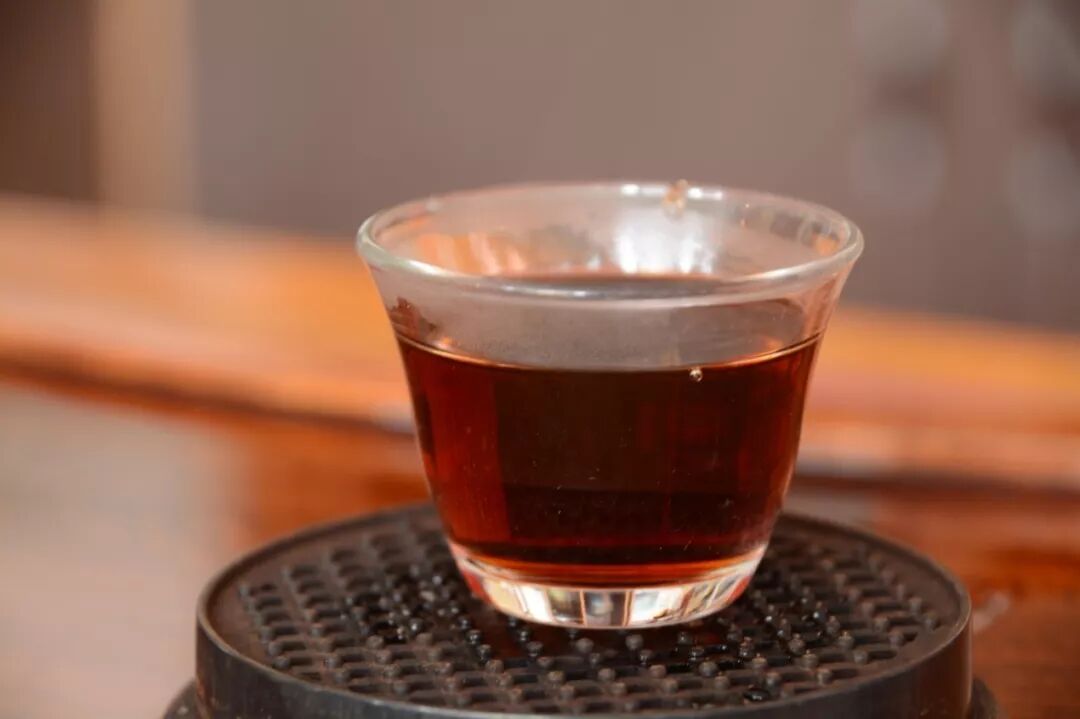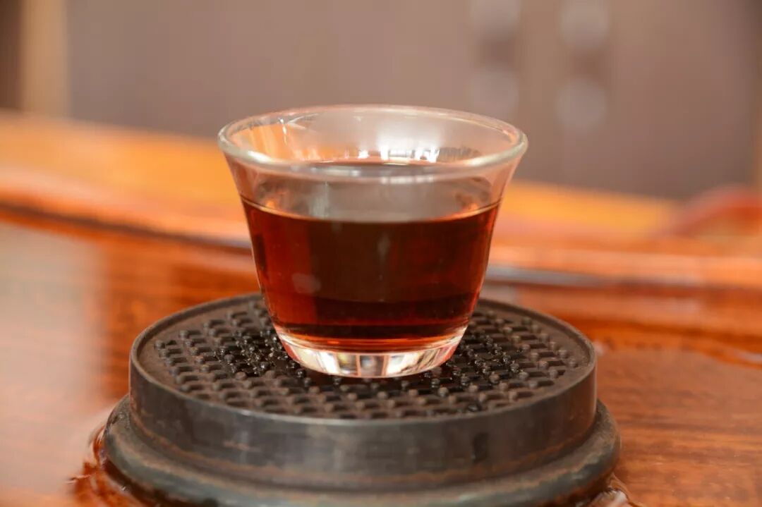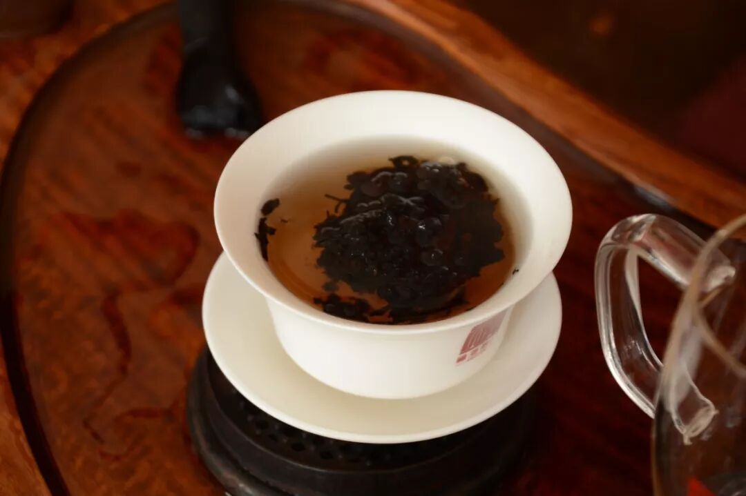 雖是第一泡,但入口時(shí)普洱熟茶的滋味已經(jīng)開(kāi)始凸顯。經(jīng)過(guò)十余年的倉(cāng)儲(chǔ)陳化,使其陳香濃郁、口感醇厚、順滑。