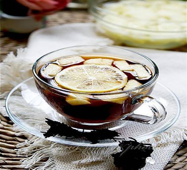 在沖泡好的普洱熟茶中滴入檸檬汁,然后加糖冰鎮(zhèn),口感酸甜可人。檸檬與普洱茶一樣兒,具有生津祛暑的作用,兩者相配,相得益彰。