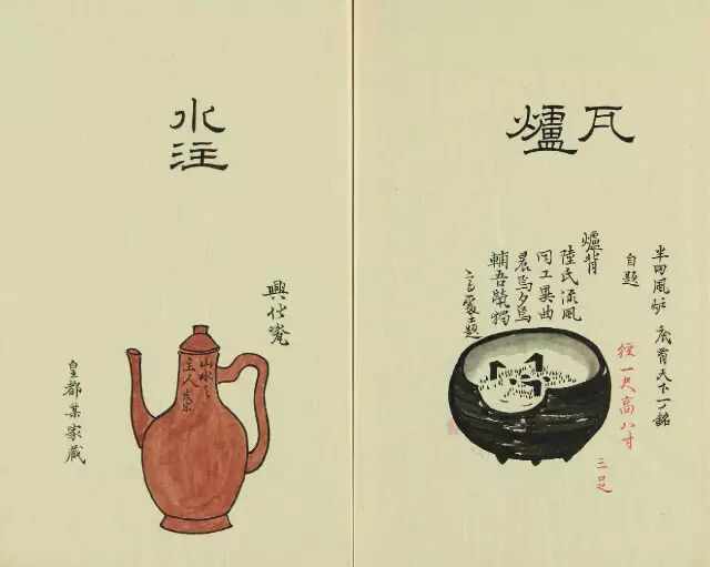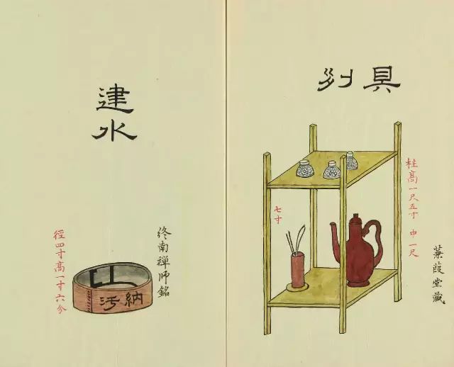 此《賣茶翁茶器圖》就乃木村孔陽氏模寫賣茶翁(高游外)茶具計33件,都彩繪木刻,甚精細。亦猶可遠窺唐宋古器形制之大略。